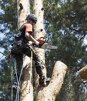 Вырубка деревьев по частям со спуском